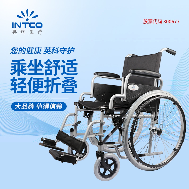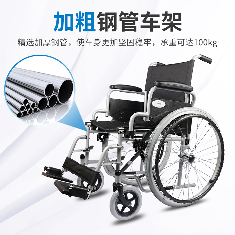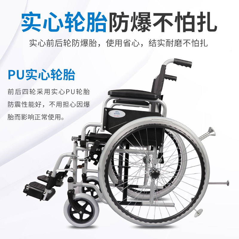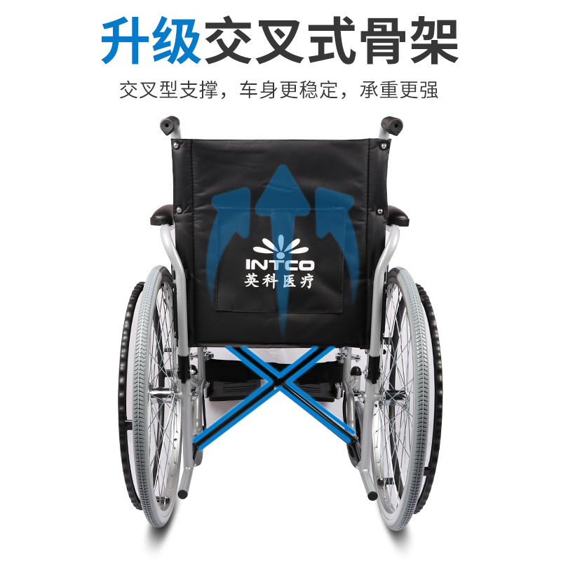 英科医疗 手动轮椅钢管加固耐用免充气胎轻便老人折叠代步轮椅