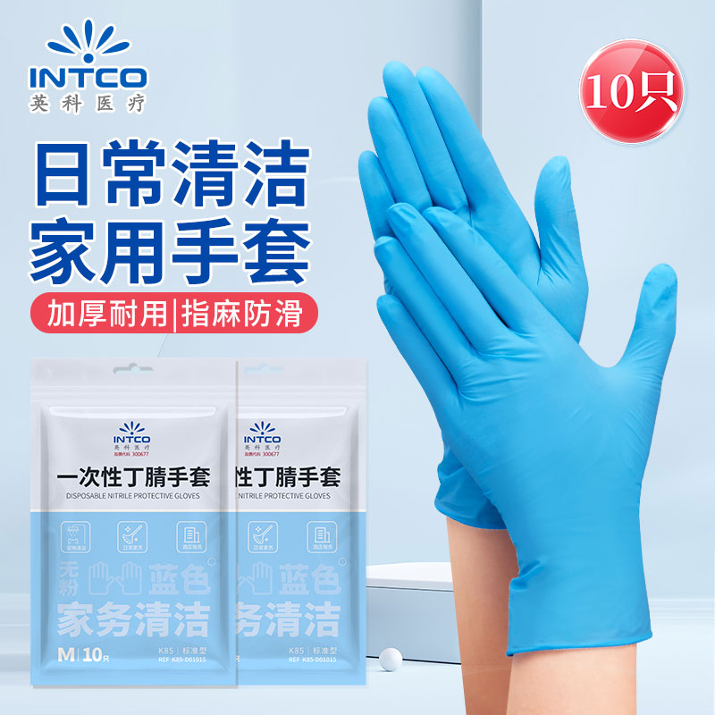 英科一次性丁腈手套乳胶食家用品厨房清洁手套加厚耐用防水洗碗