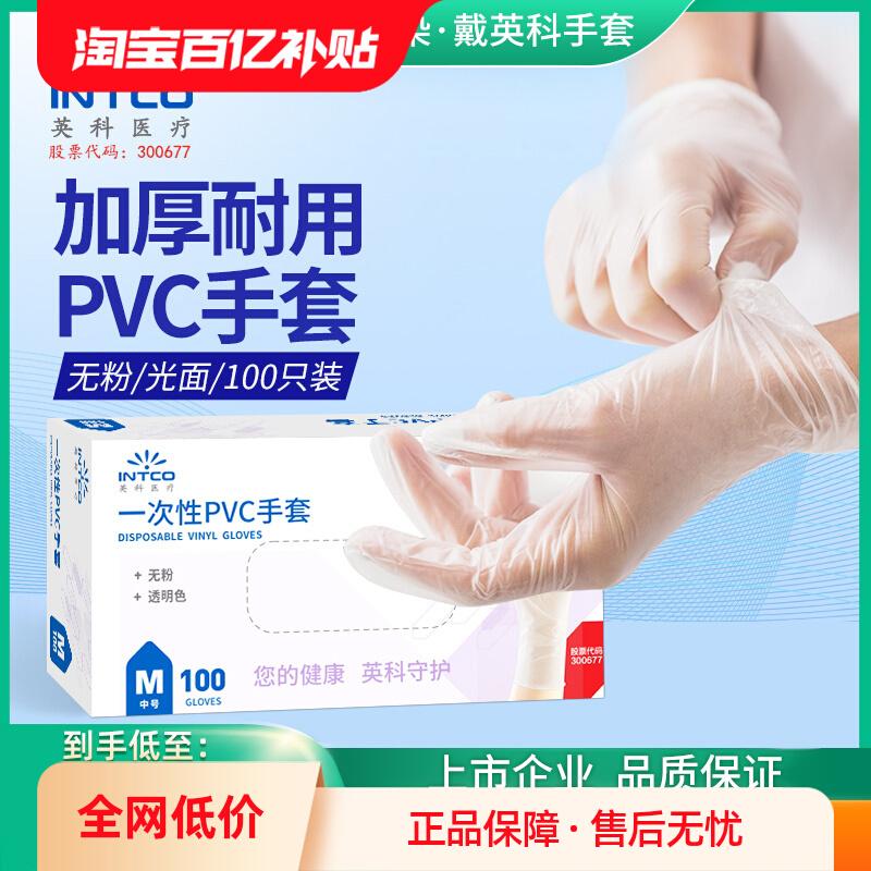英科医疗一次性PVC手套防护丁腈乳胶手套家用食品级厨房家务专用